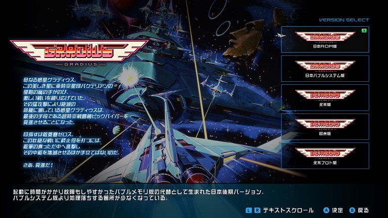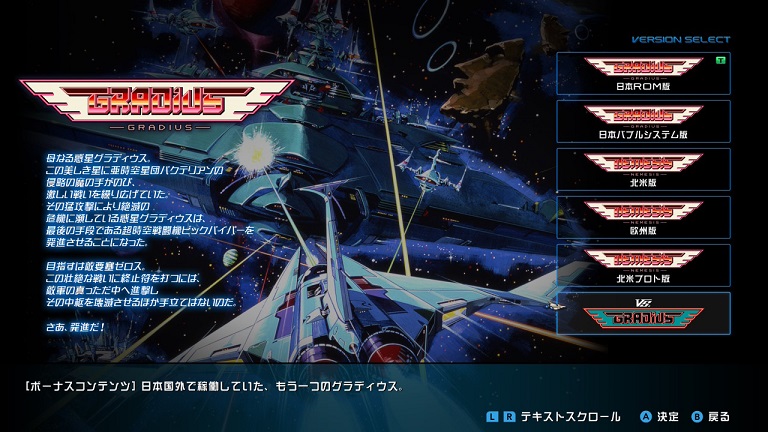 「グラディウスオリジンコレクション」がプレイできるようになりましたよ。