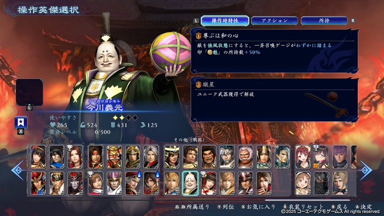 戦国無双でわりとお馴染みのマロ。へっぴり腰ですが、ある程度育ってくると強い強い。つーか、こいつ中距離で蹴鞠やらドリブルやらオーバーヘッドやらで範囲攻撃になるし、何よりこいつの