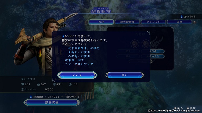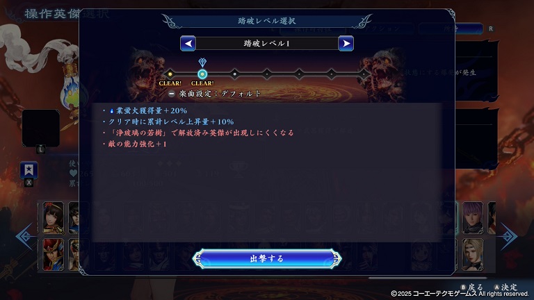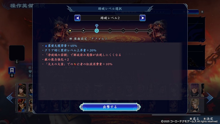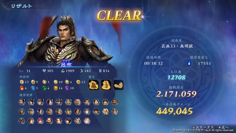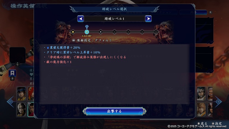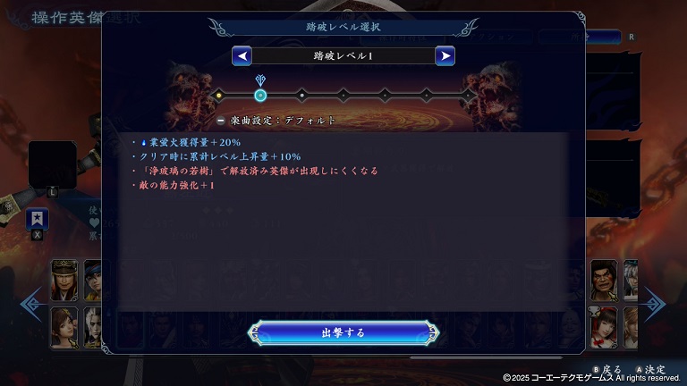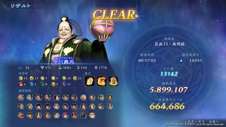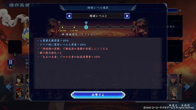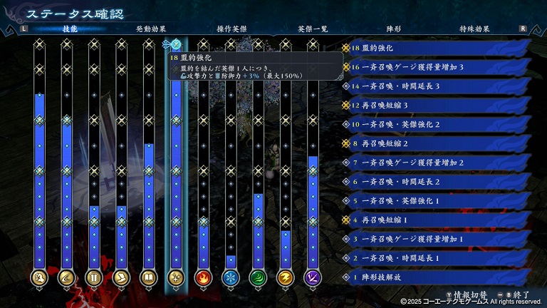 盟約を結んだ英傑1人につき攻撃力と防御力+3%(最大150%)」だと……? つまり道中仲間になったひとりあたり3%増なわけで、具体的にいいますと、
