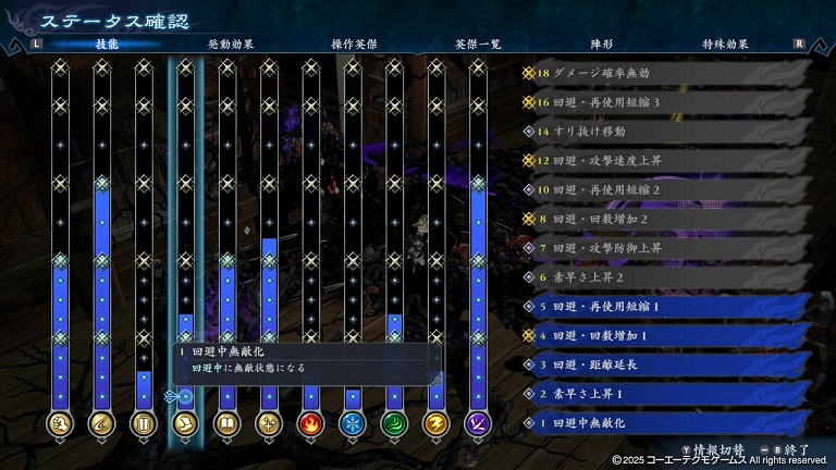 堅の印1猛進と速の印1回避中無敵化は必須。これがないと回避しても敵にダメージなし、自分がダメージ食らうという何の技かよく分からぬことになりまする。