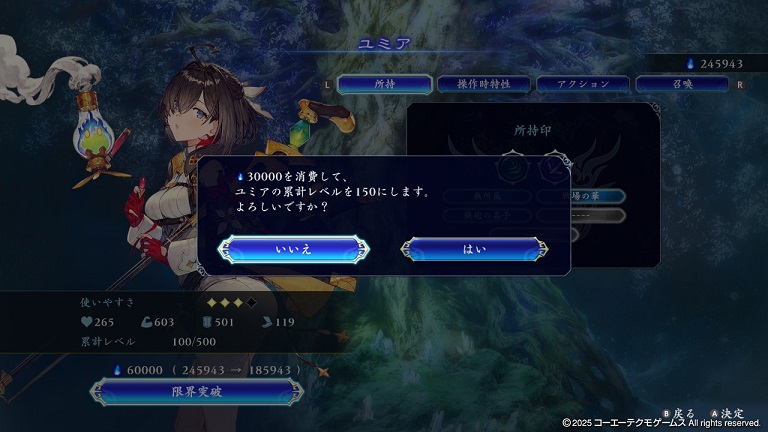 累計レベルの上昇でパワーアップするのは前に出してますが、これ次のパワーアップするとこまで業蛍火で購入ができるようです。んで限界突破ですが、