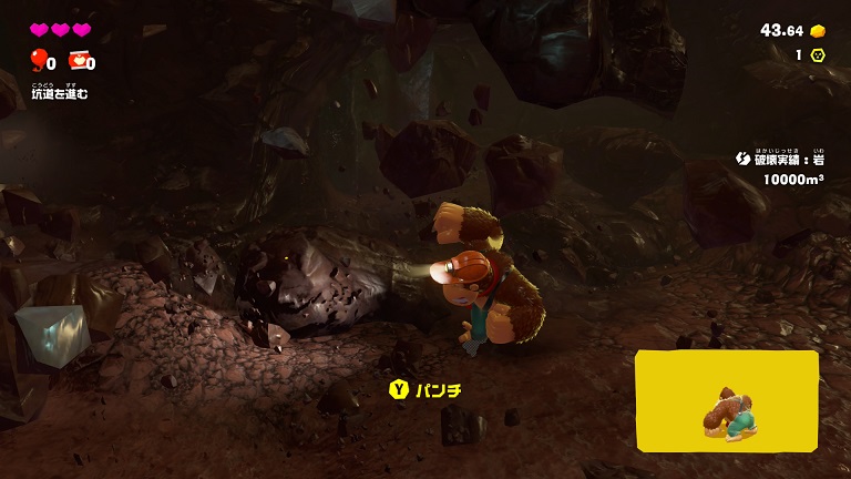 軽く10分以上、無心に破壊活動しておりました。いやヤベえぞこれ。夢中になって壊しまくっててこれじゃ進まん、と無理矢理バナナ取りに行っての10分以上。全部壊そうと思ったらもっとかかっていたでしょうな。まあ同じ任天堂のゲームでいうならば、