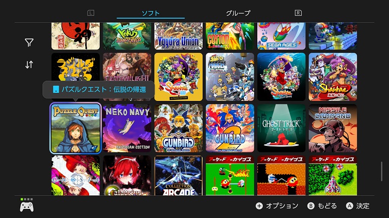 あ、ちょっと話変わりますけど、最近気づいたスイッチの機能。スイッチのってか、最近スイッチにも入った機能なんですけどね。これまで購入したDLソフトって、再ダウンロードという項目でまたダウンロードすることができたのです。しかし、このリストってのが、どうにかならんのかというくらい面倒臭かったのです。それが、スイッチ2が登場するにあたって、「バーチャルゲームカード」という仕組みになっております。それはそれとしまして、そいつをリストに出して、選んでDLするという流れなんですが、