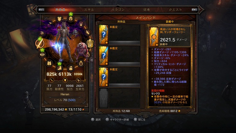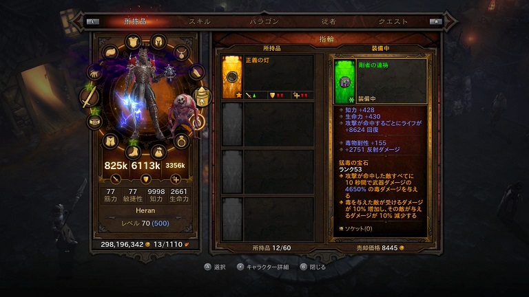 というのが前提としてありまして、この2つは押さえておきたかった。けど競合する。なので片方をパワーの方に回しておりました。防具枠になりますので、結果として「鷲座」は鎧部位として使わざるをえません。ただし、手持ちの「鷲座」はレジェンダリー止まり。「悪夢の遺産」のネタとして使うにはエンシェント・レジェンダリーの「鷲座」がほしいのですが、なかなか入手できません。ちなみにこの時点で鎧部位にハメてたのは、なんかセットシリーズの、エンシェント・レジェンダリーで効果云々よりも「悪夢の遺産」用です。これを単なるレジェンダリー「鷲座」に変更しますと700%くらい与ダメが落ちます。