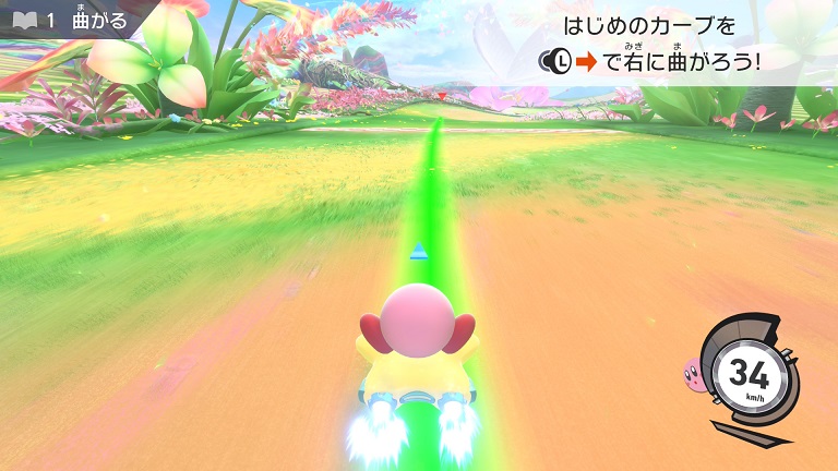まず操作のショートムービーが流れて、実際に動かして見ます。すげえと思ったのは、これ3回ずつやるんですよ。1周目は速度遅く、ガイドラインが緑色で表示される。2周目は速度普通でガイドラインあり。3周目にガイドラインが消えます。ひとつひとつにテキストで案内が表示される。なお変な動作をしたりすると指摘もしてくれます。左スティック上下を入れなくてもマシンは進みます、みたいな表示何度も見ることになります。うーん