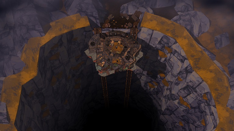 街の残ってる部分が鎖と歯車で支えられているというところでして。これがぎりぎりぎりぎりと動いて地上と深淵を街ごと行き来しています。地上部分には、資源スペースというか拠点がありまする。