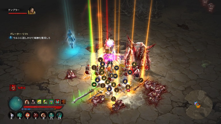 これね。えっとこのスクショからうっすら分かるんですけれど。ボタンの割り当てって9時方向にあるAから時計回りにZR、Y、X、B、ZLなんですよね。下半分はパッシブ枠。Rはポーション固定。6つ自由に設定できるってことですな。スキルを2重とかは無理でしょうが。現状、