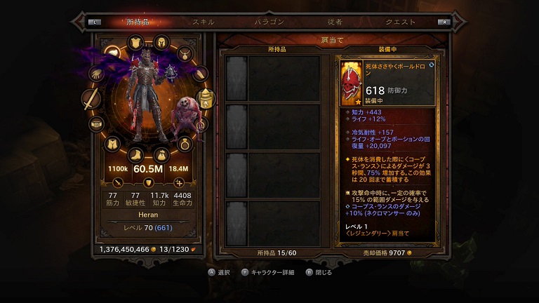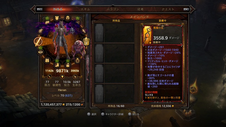 レベル71のノー・デス達成。「悪魔の舌」効果かな。んで、この辺りで入手したレジェンダリーの中に、