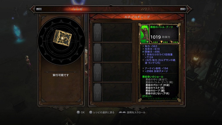 信用できるのかしら昔の私。「悪魔の舌」ではなく、「悪疫のバトルブーツ」に試してみることに。まあいざとなったら上書き効くしね。ランク3のソウル・シャードをブッ込んでみる。
