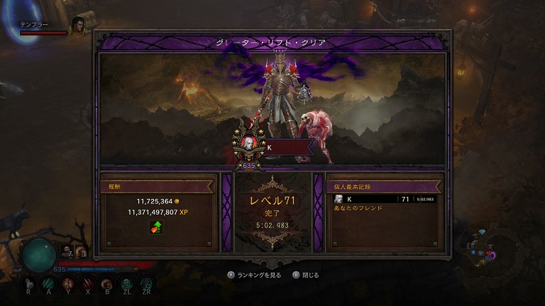 グレーターのレベル68をノーデス突破。翌日、そのまんまレベル69ノーデス・クリア。
