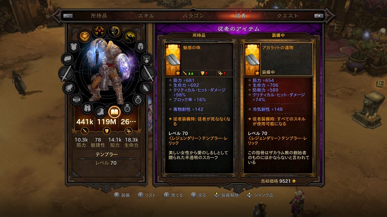 このくらいですかね。従者専用アイテムを入手するのにやっかいなのは、従者って3人いて、それぞれに専用アイテムが存在すること。専用レジェンダリーアイテムはクールダウン重視、すべてのスキル使用可能、死ななくなるの3種類があります。んで、もっというならば、