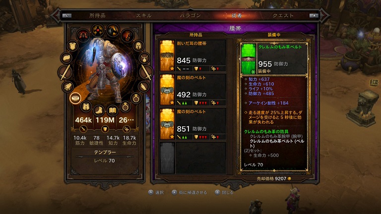 これ、6日のスクショで、「悪魔の舌」に変える前のスクショからはレベルが10くらい違うんで単純な比較はできませんけど、攻撃力と防御力は上昇してますわな。しかも