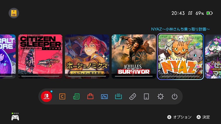 「NYAZ」「Achilles:Survivor」「ポーショノミクス」「シチズン・スリーパー」とあと左端で切れてる「コバルト・コア」でした。「NYAZ」以外セール品。どれもまだ未プレイですな。