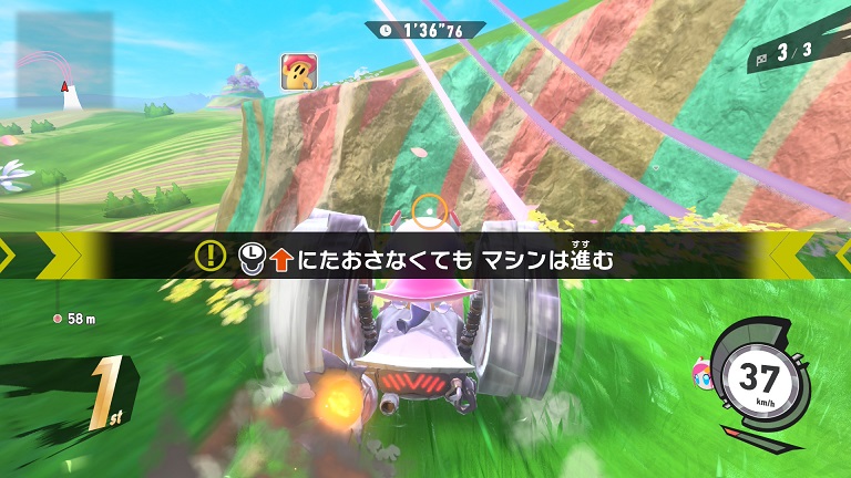 全部クリア。あ、そうそう。お名前「K」というのが記入されていますが、これも解決しています。酔い対策やボタン設定やら諸々の項目をセットにして名前で登録できるようになっているのです。例えばこのコースは酔いやすいからセットを変更したい、とかもできますし、複数のプレイヤーが扱う場合にはそれぞれ組んでいると楽でしょうね。私の場合は、酔い対策はなしで大丈夫そうなんでそのまま。で、レバーガチャで発動するスピンがなかなか出なかったり、というイメージがあったので最初はそれが出やすくなるように調整。ところが、マシンでヘンシンスターを使ったら、もう暴発しまくって頭を抱えました。このマシンは、2種類の形態を切り替えていくのですが、切り替えはスピン時にオートなんですよ。マシンの教習でヘンシンスターを扱ったやつだと、指示されたエリアで切り替えなくてはいけないので大変でした。ので、とりあえず普通に戻すことに。なので結局「おなまえなし」でもいいんですけどね。またいじる可能性があるのでそのままに。