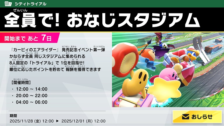 お知らせもいくつか。更新のパッチはとうに自動アプデで当たっていたようで、問題なし。イベントは、日時限定で、時間もある程度バラしてあるのは体験会と同じですね。どれかに参加、というのがやりやすそう。参戦するかどうかは別ですが。