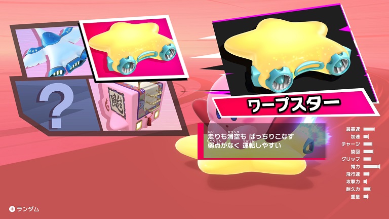 撤収。てことで、オンラインでエアライドをやってみんとす。前回ほとんどカービィでやってたのでキャラ変。スージーを選択。