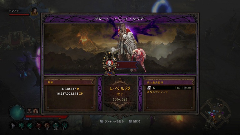現状の最高難易度であるトーメント]Yまで来ましたね。一方それを越えてきているグレーター・リフトはといいますと、