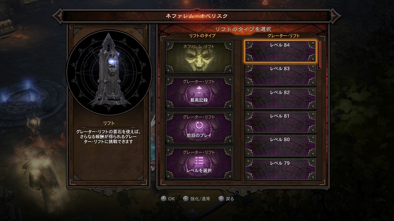 そんで、血の破片1300ってのは、グレーター・リフトレベル80以上のクリアが必須です。リフトを新しくクリアするたびに血の破片の上限は+10されます。スタートが500なんで、1300まで上げるには800上昇すなわち80のレベルが必要ということで。