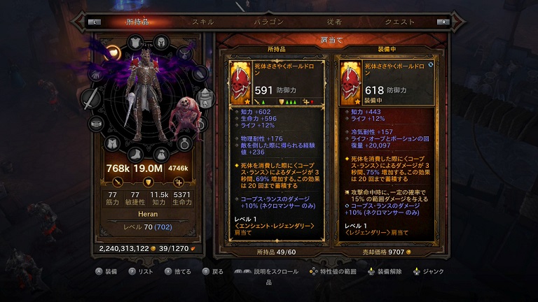 強化関係で悩みどころになってますのは、「死体ささやくポールドロン」なんですよね。これ、結構早くに入手したものをほぼ変更せずに使っております。その後入手してないとかじゃなくて、わりとドロップしてますし、なんならエンシェントもかなり出ています。