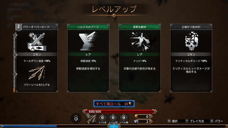 何故かカーソルが再ロールに合った状態で開始になるので、ボタン連打しているとお金消費して再ロールするハメになります。