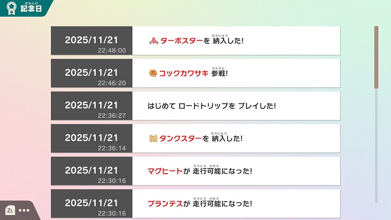 いくつもらったんだ。この日最初の記念日認定が22:12で、最後のが22:48。