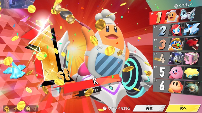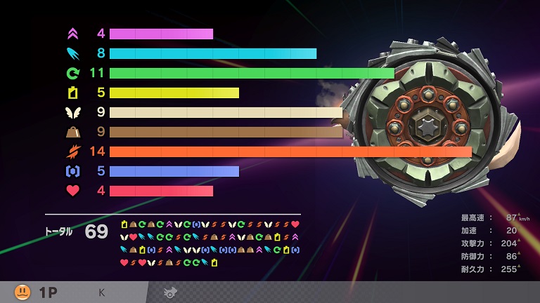 カワサキ以外のスクショが今回なかったんで前回のからカービィ、次がカワサキがメーターのとこからひょっこりしておりますな。かわええ。これ、全キャラ分ありますわな。なお、レベルチェッカーでは、マシンとかキャラは複数入手可能です。マシンにいたってはマイルショップでマイル(ゲーム内通貨)で買えるし。同じキャラについては複数入手しますと、