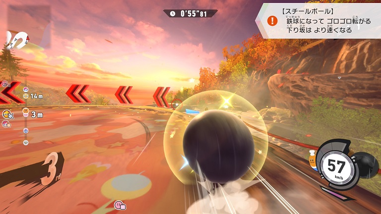 ゴールしたときのドヤ顔がいいわ。ああ、あと思い出したので書きますけど、レース中の右下にメーターがありますわな。ここ、選択したキャラがひょこっと顔出してるんですよね。