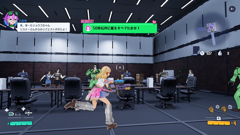 バカゲーとして面白いとは思うのですが、んん? と首を傾げる点もありまして。ひとつはカメラワークの遅さ、かなあ。設定を詳しく見てないんですけど、ここはいじれるような気もします。デフォルトだと周辺を見回すのが遅く感じられました。もうひとつは