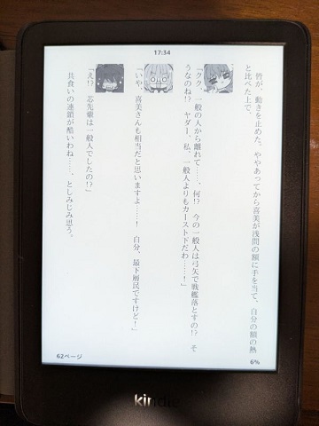 Kindle端末よりも簡単ですね。カラーも表示されてますし。ただ、実際に文字を読もうとしたときに、うーん、となる。いや、