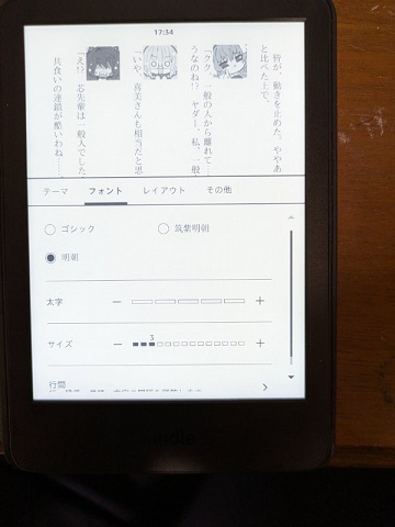 マンガに関しては、読んでみましたところ、小説と違って文字の大きさとか絵の大きさ変更できるわけでもなさげ。ってことは、ちょいと画面大きさの関係で読みにくいかもです。