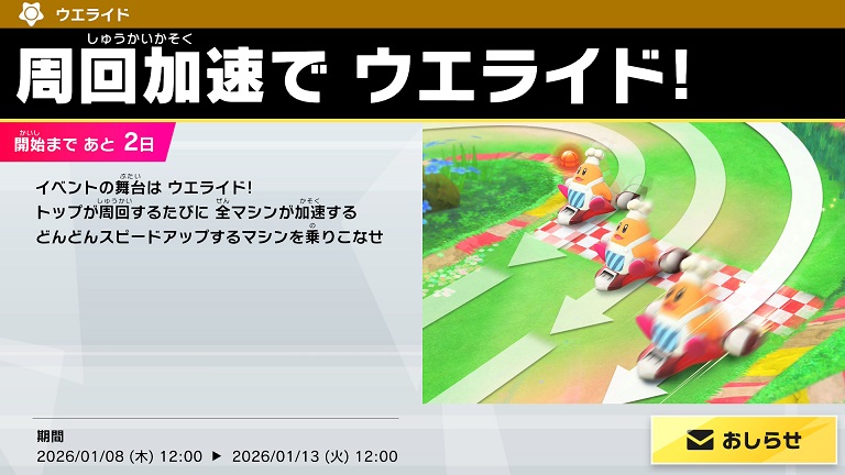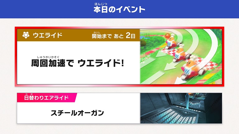や、今度のイベントはウエライドじゃん。これまでのイベントはすべてシティトライアルだったからねえ。ウエライドは参戦台数が少ないし、上から見たレースになってきます。操作感がだいぶ違うのですよねえ。しかも周回するたびに速度が上がるとな? ちょっとまた参戦してみっかなー。ちょっとテンション上がったので、日替わりのイベントをやってみる。スチールオーガンですかエアライドですか。まだ自力で出してないんですよねえ。なのでコースがよく分からぬ。