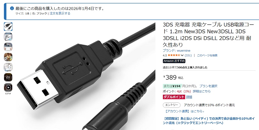 注文した後で、ふと気づく。散々DSのケーブル探してましたが、その間、