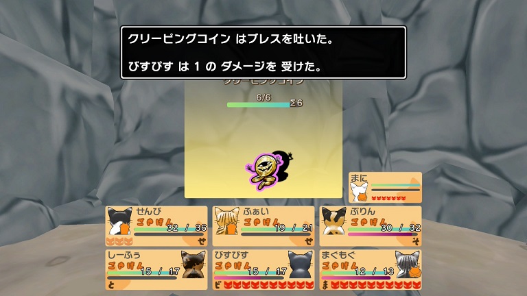 やっぱりぃぃぃぃ。低ダメージ全体ブレスの群れ。まだこのくらいの数だから、1ターンあたり10ダメ程度ですむでしょうが、アホみたいな群れが来るとそれだけで終わりそうでござるな。