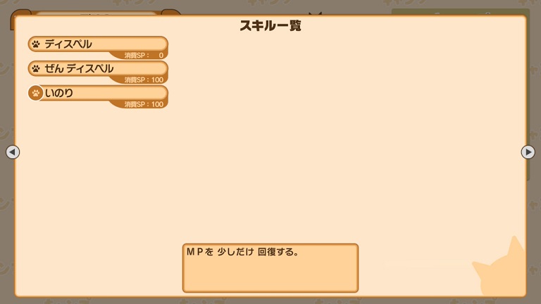 MPとは別にSPというのがありまして。MPは呪文の使用に関係しまして、地上に戻ると全快します。これとは別にSPはスキルに影響しまして、戦闘中でしかスキルの使用はできません。速度を上げたりとか防御強くなったりとかそういうの。まあ使わなくてもいいんですけどね。なおSPは攻撃を食らったり「がまん」(=防御)を使用したら少し増えます。