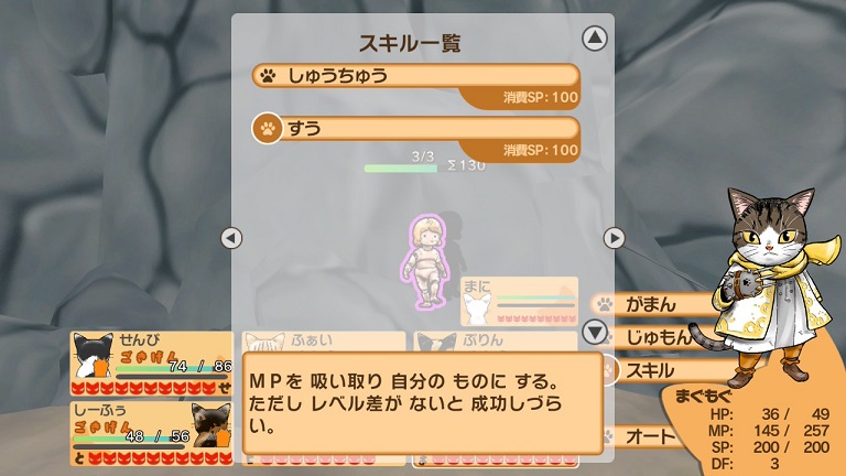 メイジには「すう」がありました。メイジはまだいいんですよ。後衛で「がまん」すればいいし。でも、今私のパーティー、プリースト前衛です。