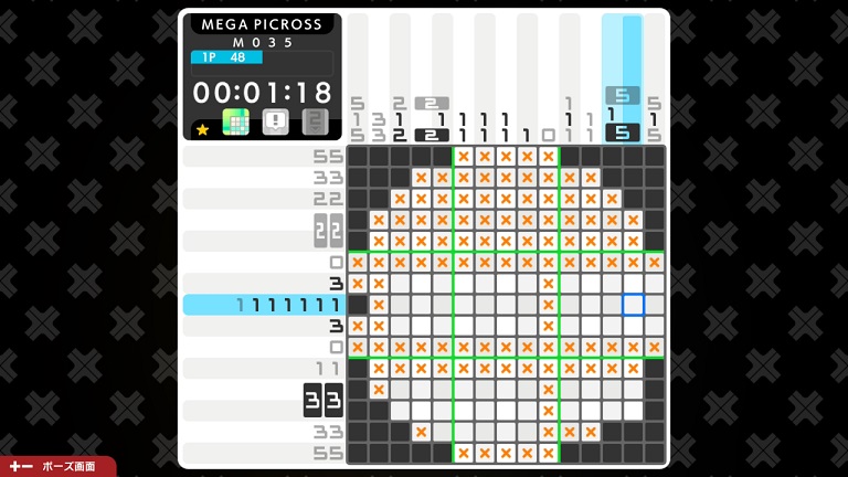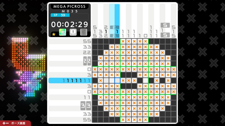 コロナ療養中、ぽちぽちやってたのが、いつものピクロスなんです。前回でしたか、ノーマルのはクリアしたので、今回はメガピクロス、だったかな。ちょっと難しいやつ。